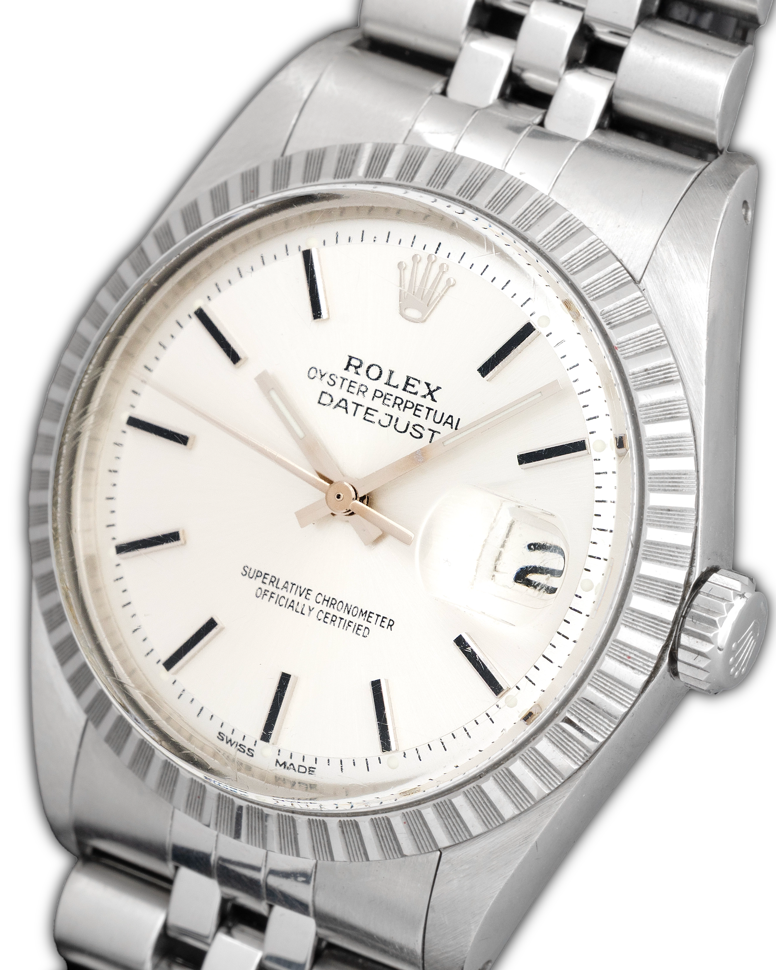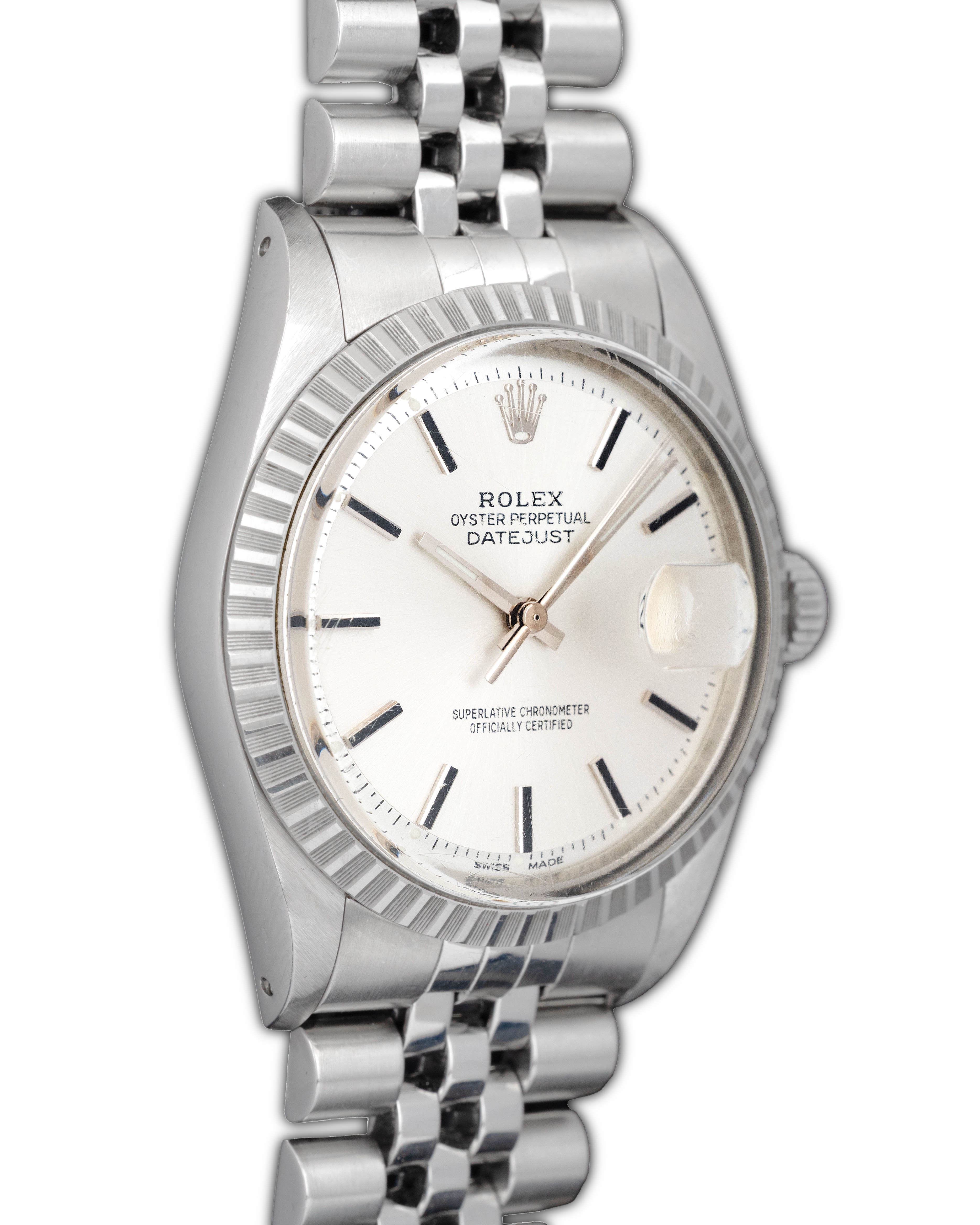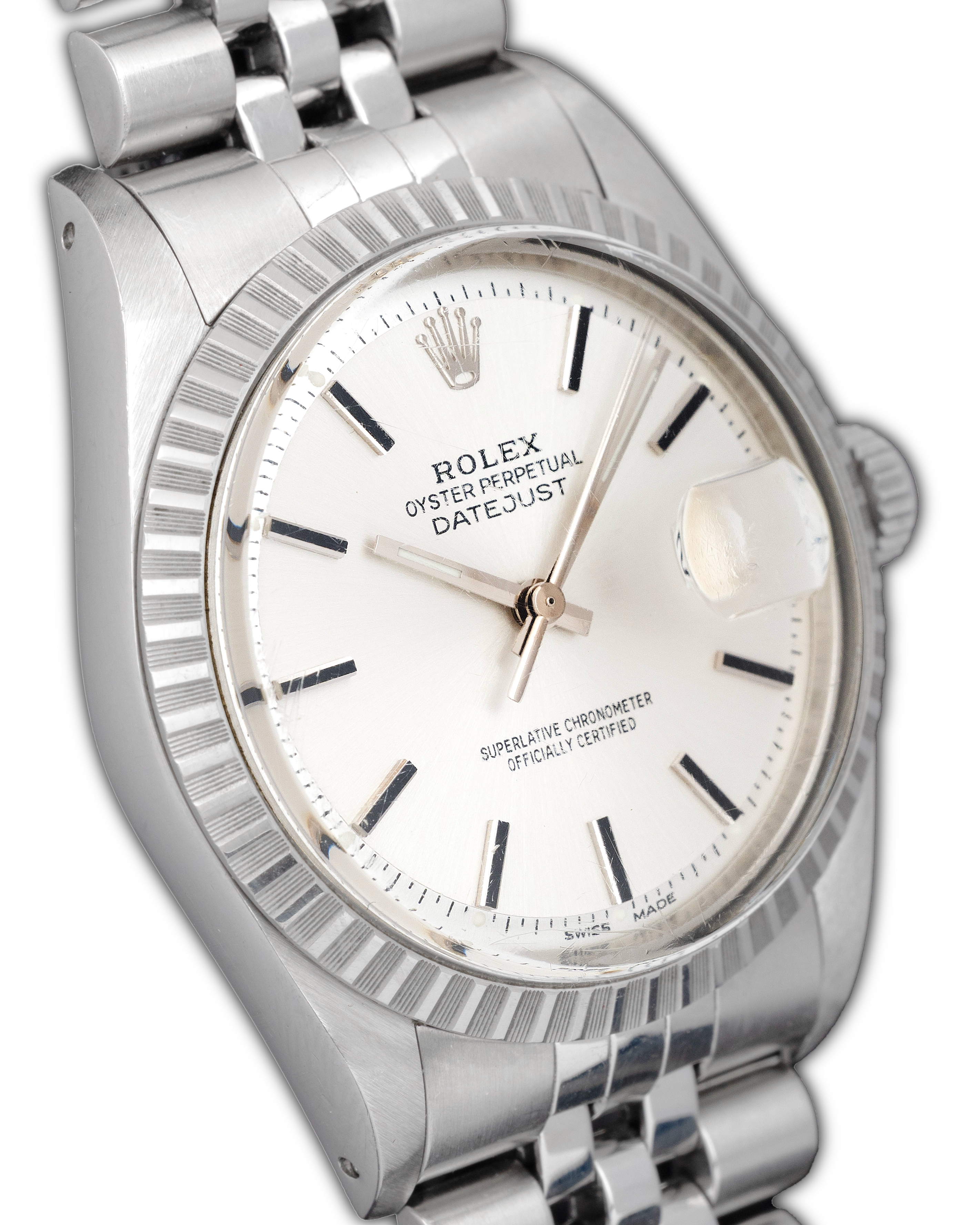 The watch was offered on both the Oyster bracelet and the more formal Jubilee bracelet, both in stainless steel, secured with a folding clasp. With water resistance ensured by the Oyster case and screw-down crown, the Datejust 1603 was as practical as it was stylish.