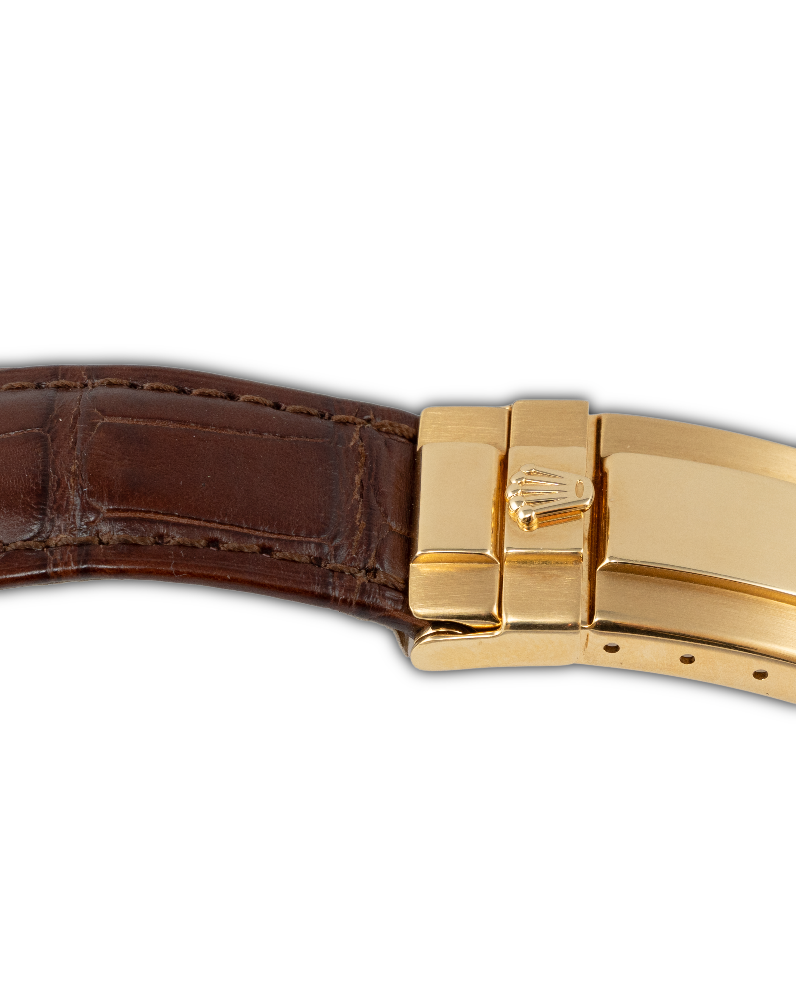 - Case Material: Yellow Gold | Bracelet Material: Alligator Leather