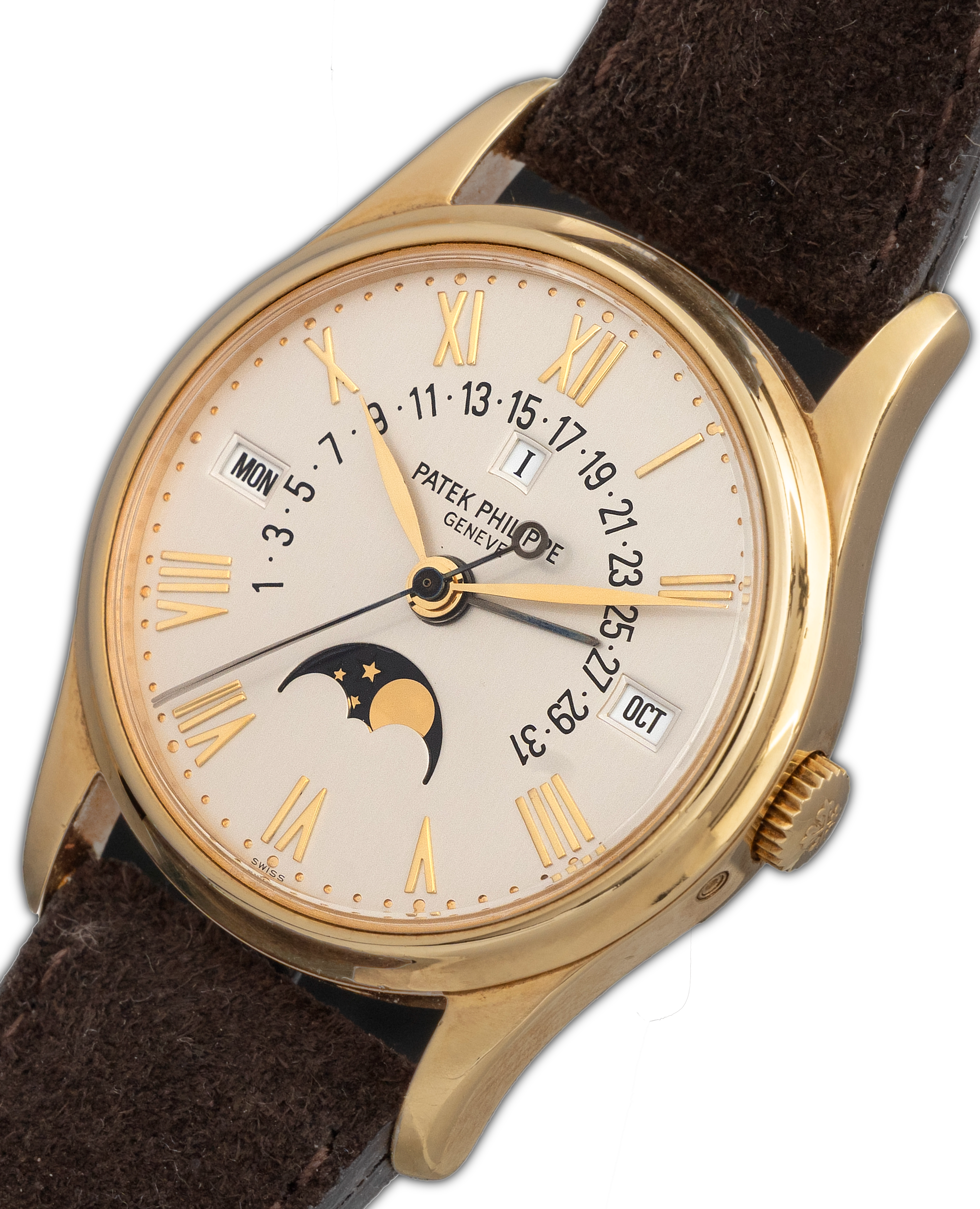 The Patek Philippe 5050 features a round case with a moderate size of 37mm in diameter, offering a versatile fit on most wrist sizes. It strikes a perfect balance between being large enough to showcase its intricate design while remaining refined and understated. The case is crafted from precious metals, with variations in yellow gold, rose gold, platinum, and in rarer instances, stainless steel, ensuring a timeless and luxurious aesthetic.