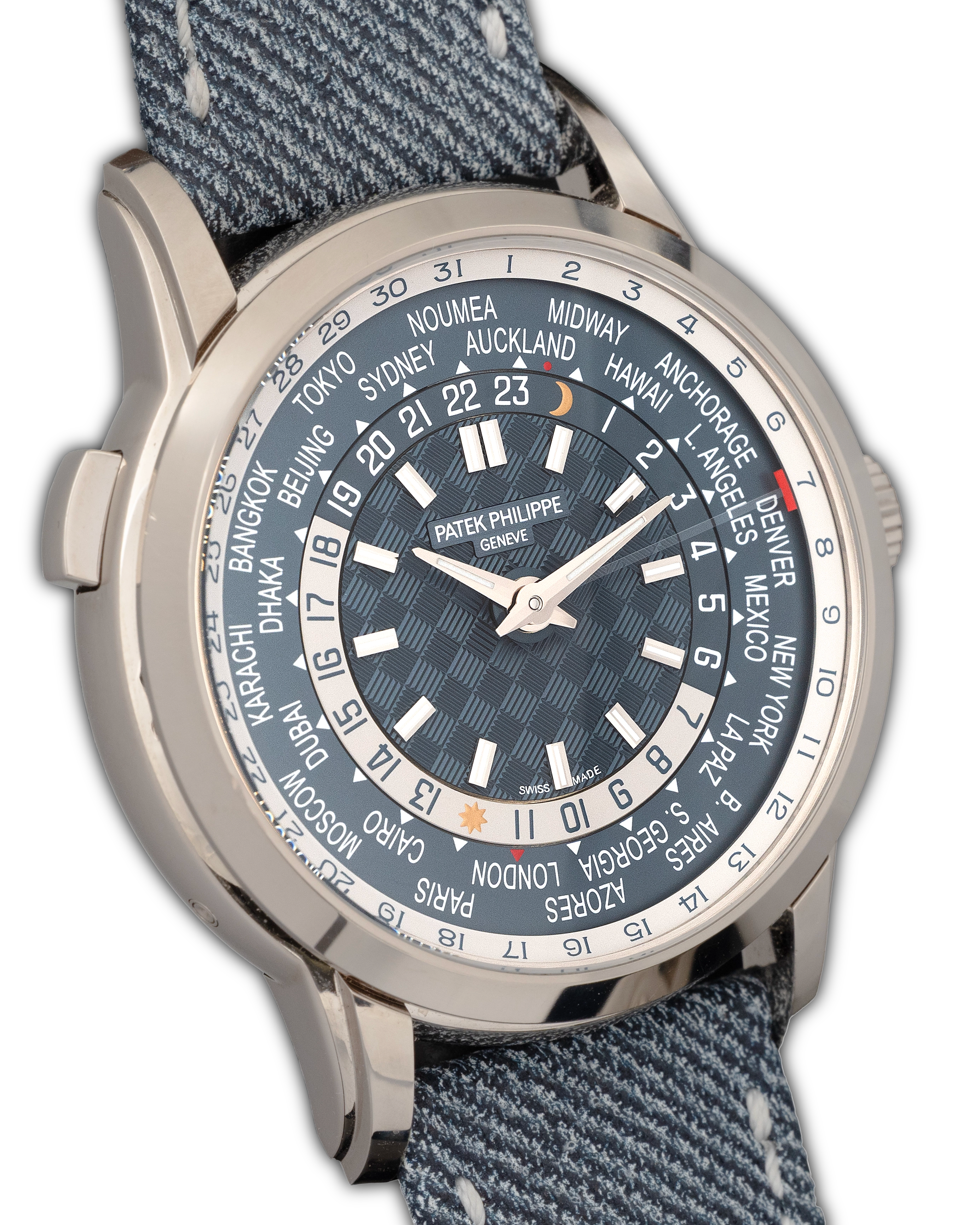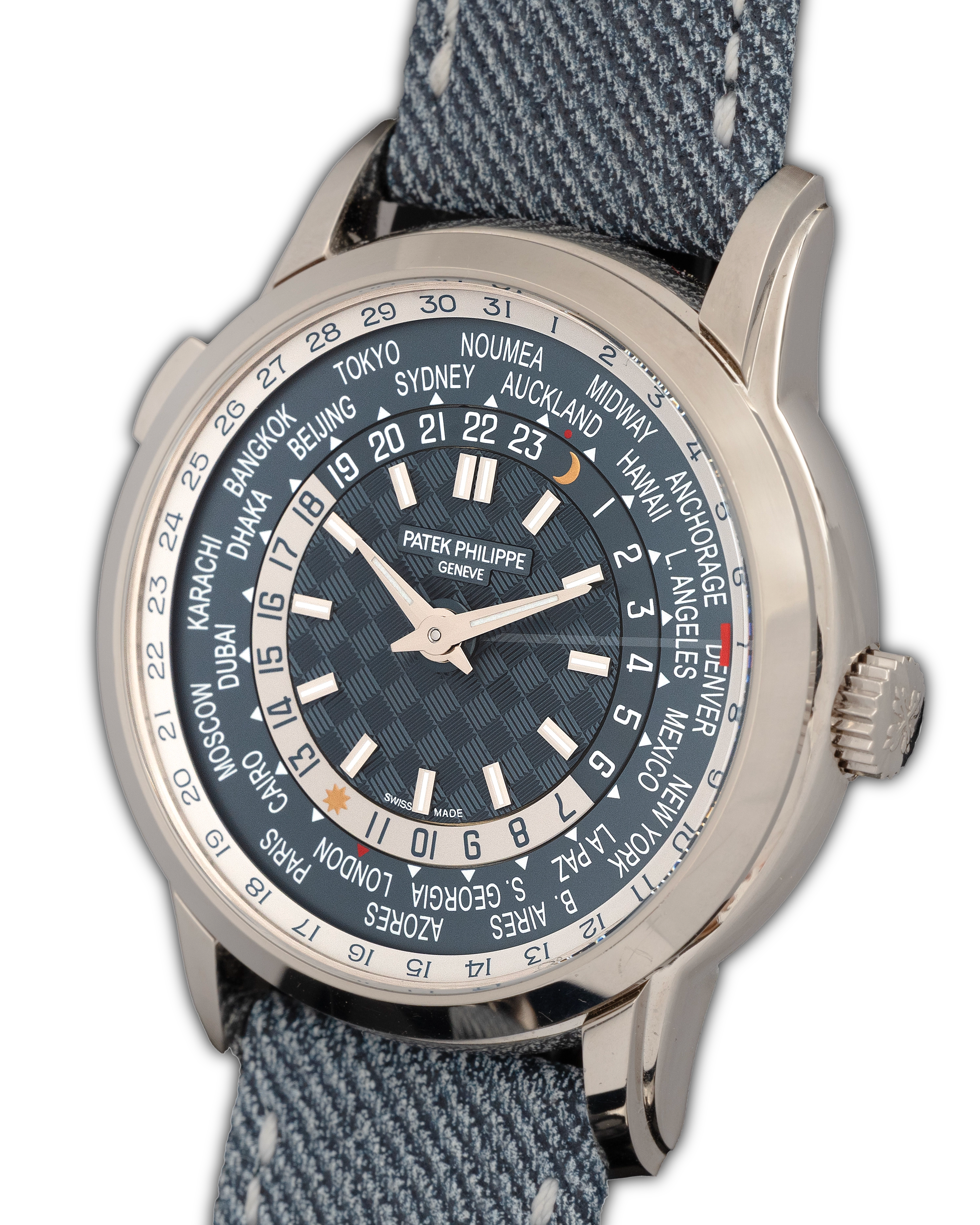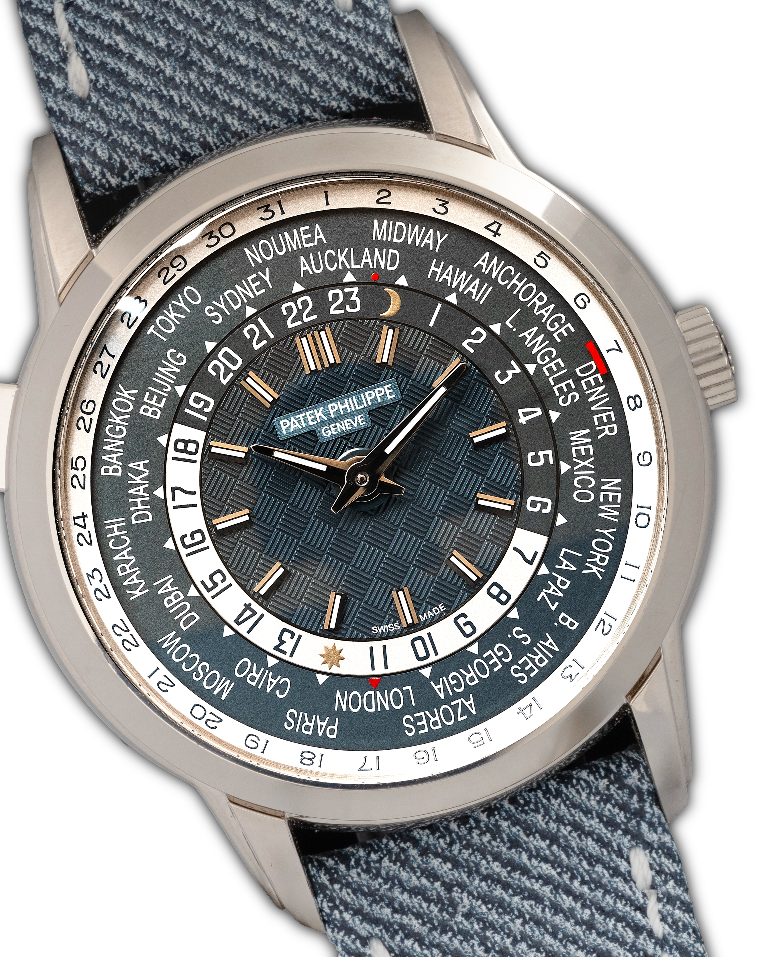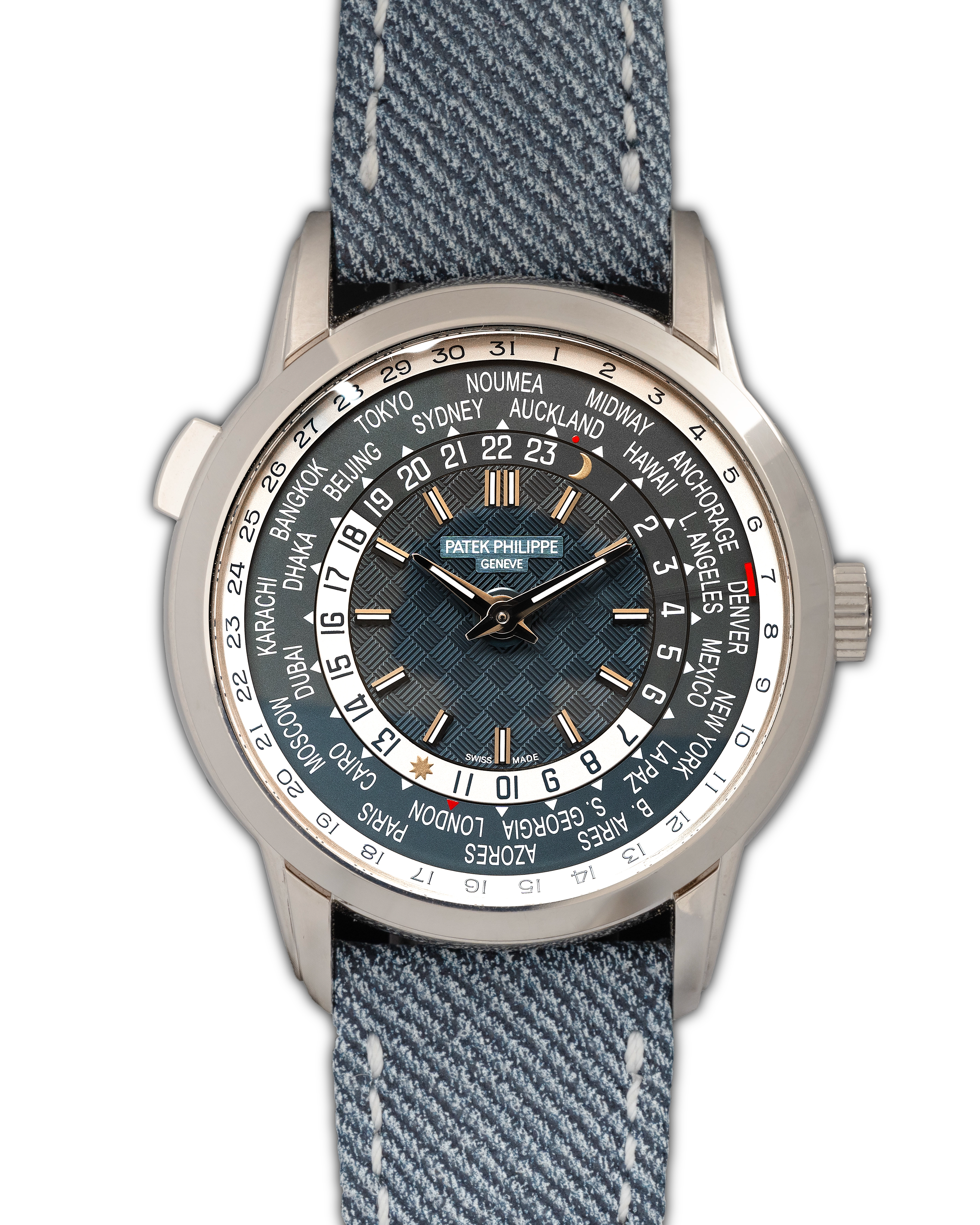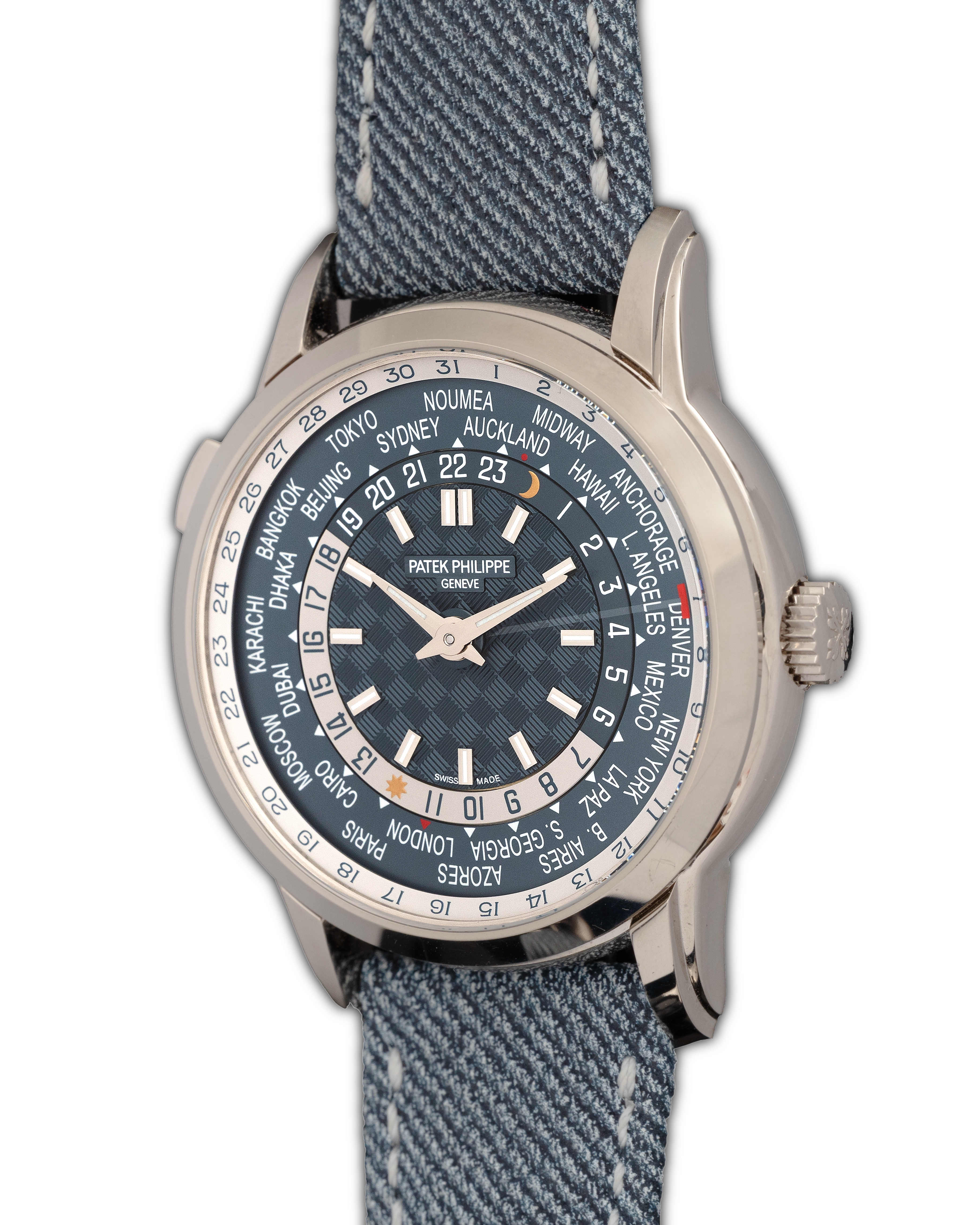Paired with a hand-stitched gray calfskin strap and a white gold fold-over clasp, the 5330G-001 exemplifies Patek Philippe’s dedication to artistry, innovation, and travel-ready elegance. Produced in very limited numbers, it stands as one of the most refined and technically advanced World Time watches ever created.